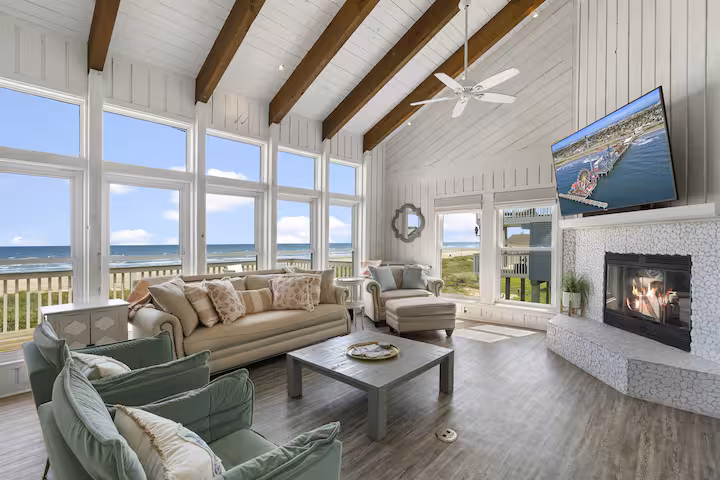 Sweeping Gulf views immediately take your breath away as you enter the open-concept main level. Filled to the brim with coastal finishes — like hardwood floors, shiplap walls, vaulted ceilings with accent beams and stainless-steel appliances — this serene 3 large bedroom/2-bath retreat is located on an idyllic sun-kissed corner of Terramar Beach.